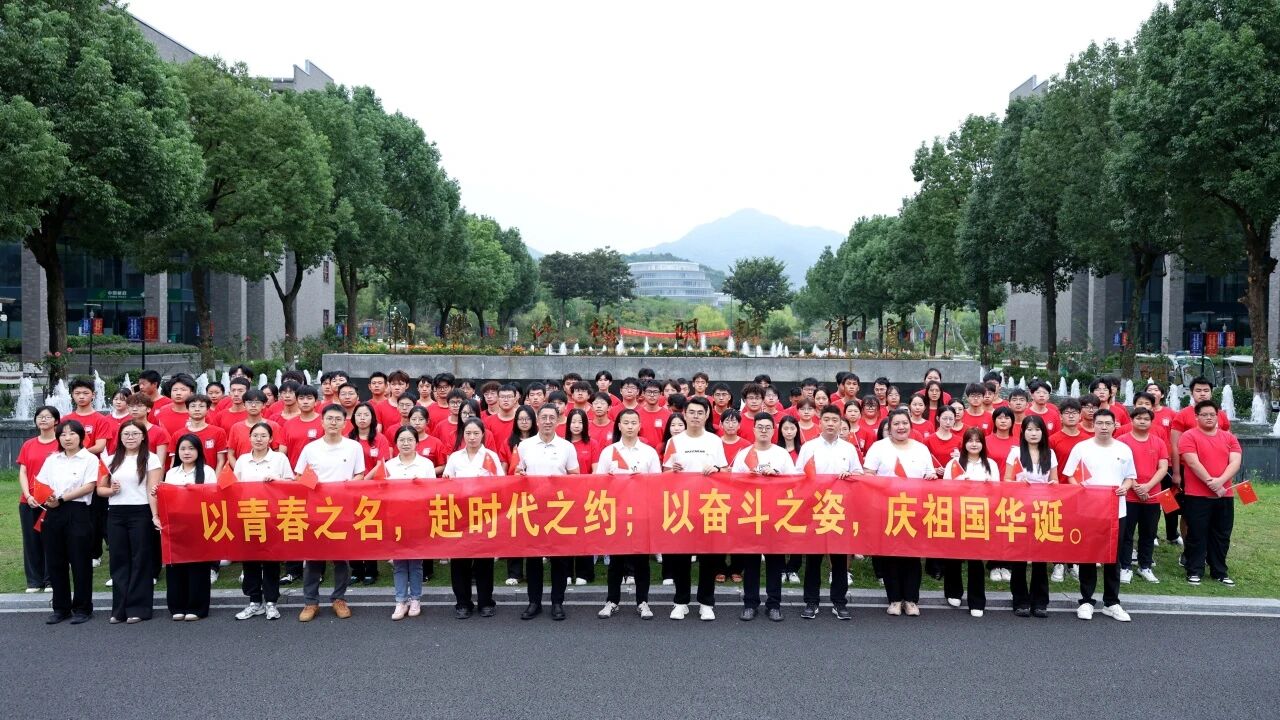 10月1日清晨,学校在下沙校区文化活动中心五四广场举行“共庆华诞,强国有我”庆祝新中国成立76周年主题升旗仪式。校党委副书记戚明钧,学校各职能部门负责人、各学院师生代表,教职工子女共计1100人参加此次活动。